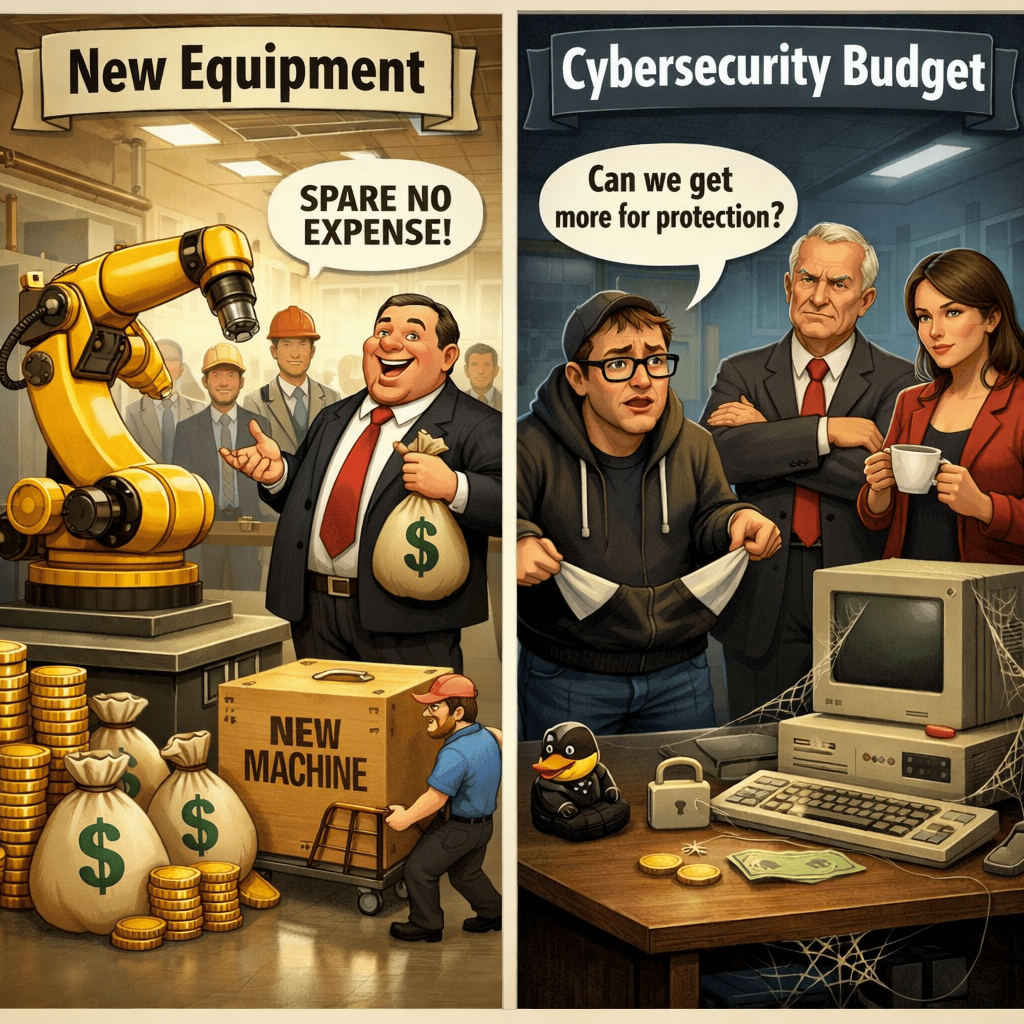 Een nieuwe machine levert direct iets op. Je ziet hem staan, hij produceert, hij verdient zichzelf terug. Security levert niets zichtbaars op. Het voorkomt iets wat misschien nooit gebeurt. Dat maakt het een lastig verhaal richting directie.
